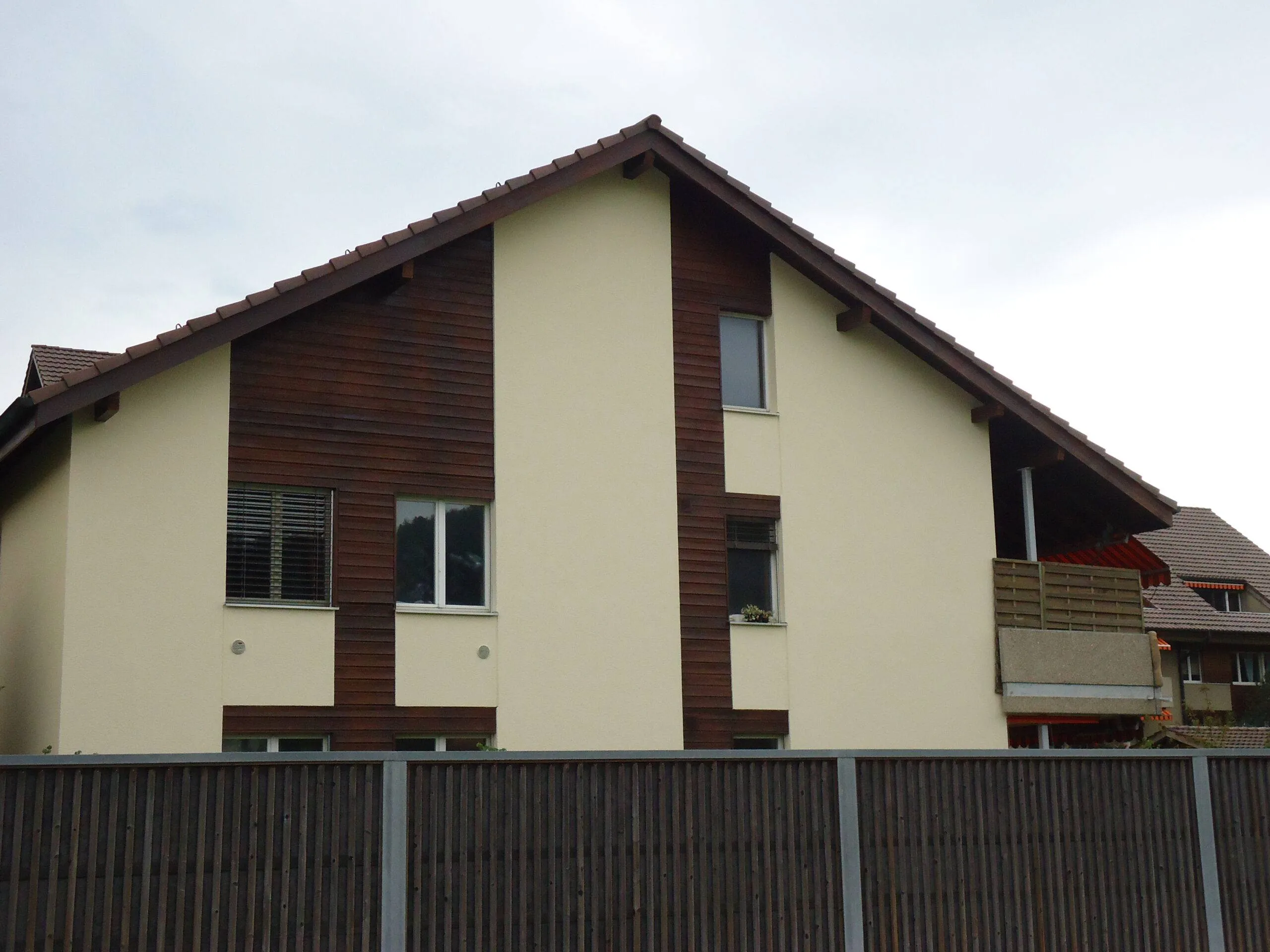 Abschliessen wird die Holzfassade mit einer Lasur behandelt. Die Lasur ermöglicht es, dem Holz einen einheitlichen Farbton zu geben, bei der die natürliche Struktur des Holzes weiterhin sichtbar bleibt.