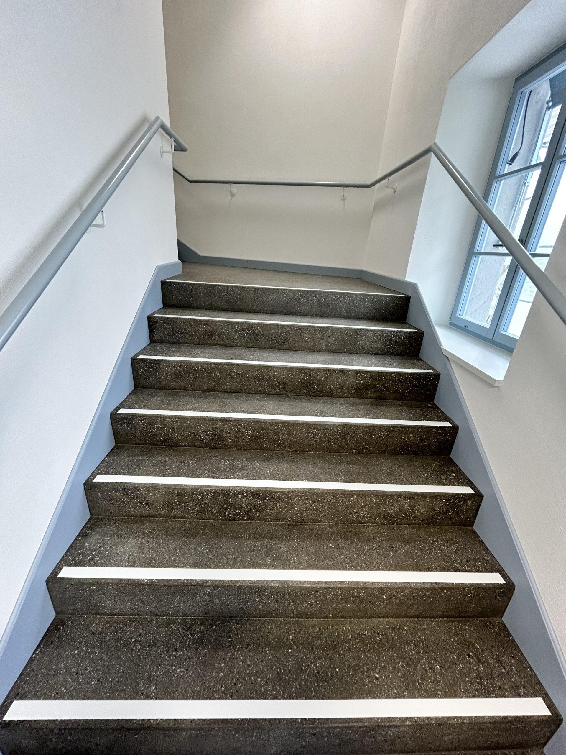 In der Tagesstätte Lenzburg durften wir alle Treppen, Flure und Räume auf drei Etagen renovieren. Unsere Malerarbeiten unterstreichen die verschiedenster Baustile und Materalien in ihren Eigenheiten und verbinden sie gleichzeitig durch ein durchdachtes Farbkonzept.